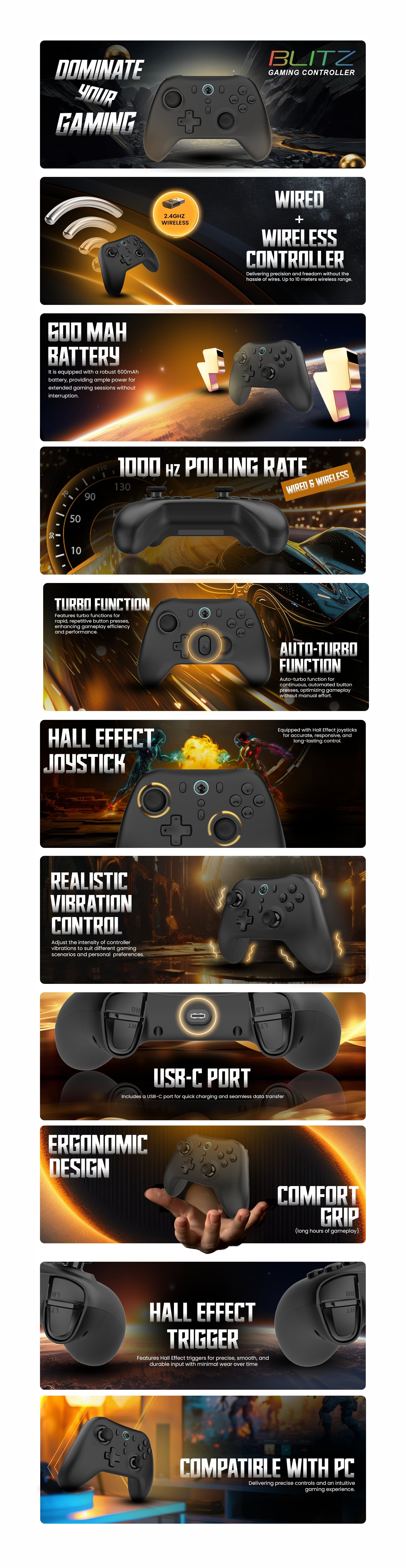 Certified Refurbished Cosmic Byte Blitz Dual Mode Controller for PC, HE Joystick, HE Triggers, 1000Hz Polling