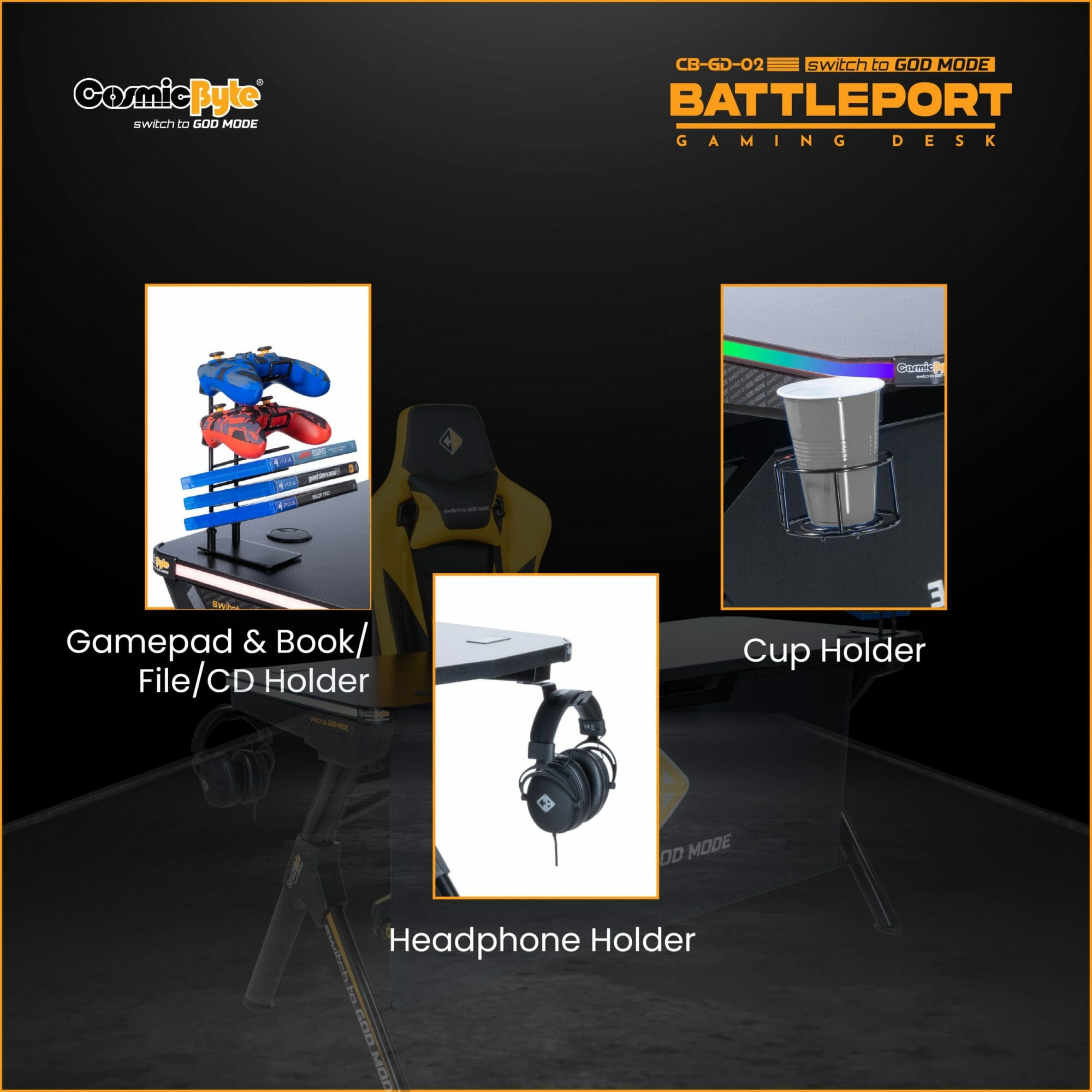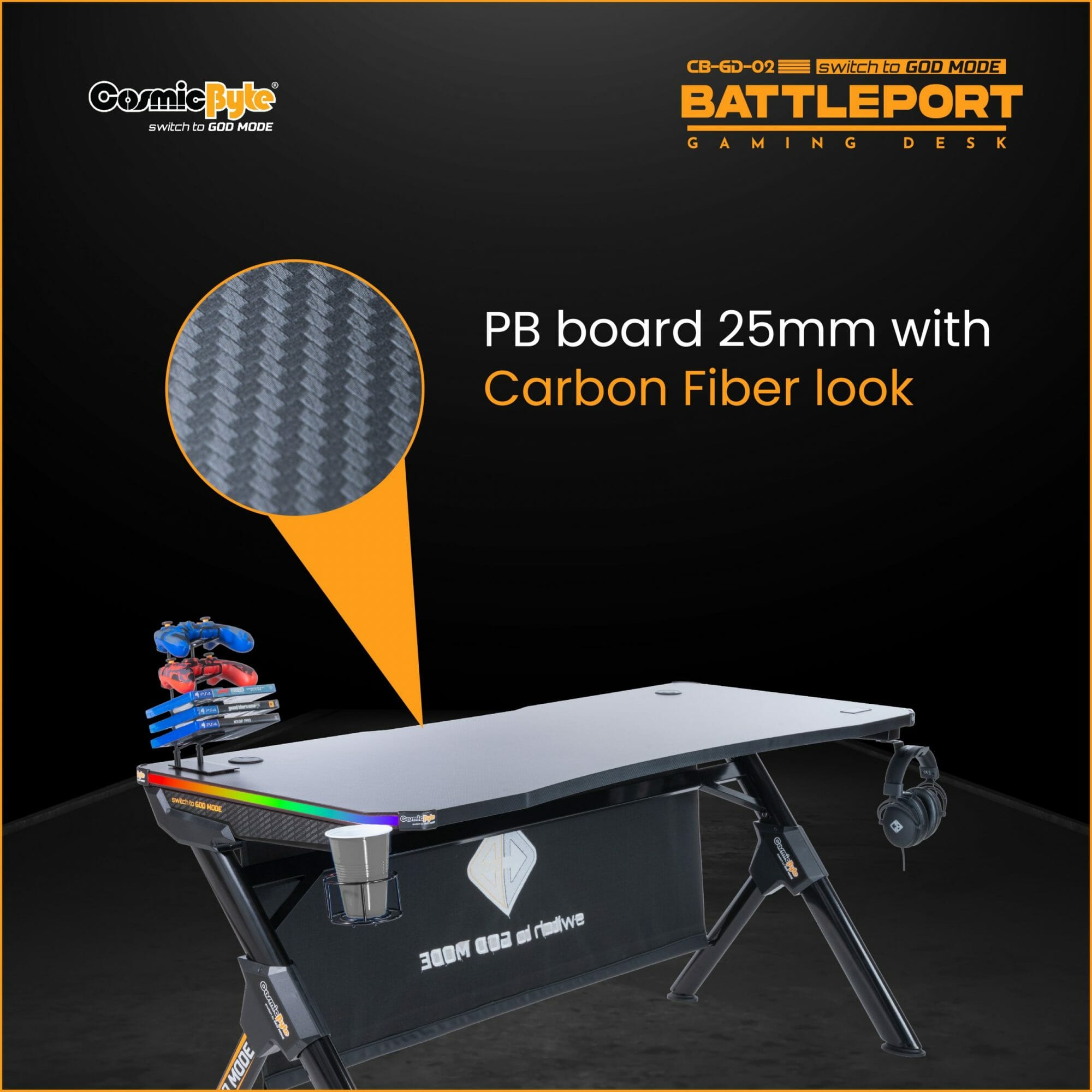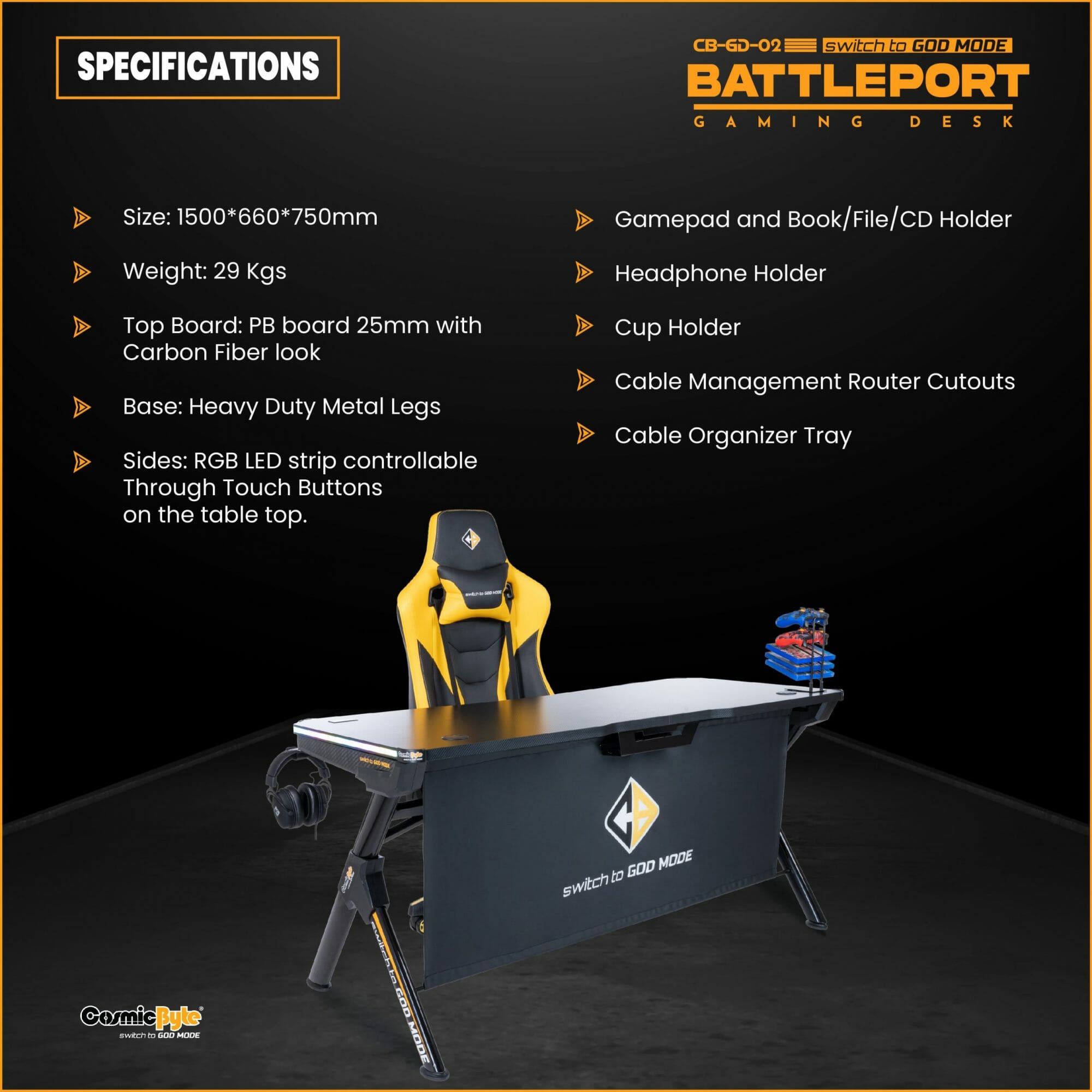 Cosmic Byte CB-CD-02 Battleport Computer Desk with RGB Touch Control