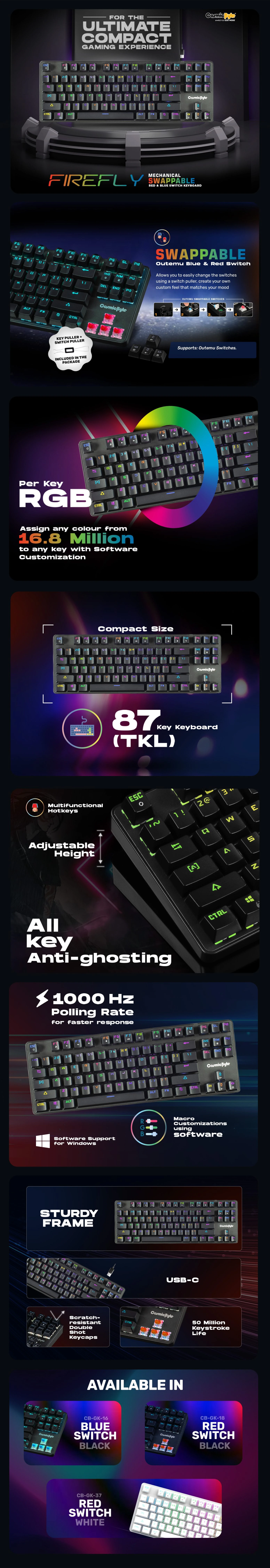 Cosmic Byte Firefly TKL Per Key RGB Mechanical Keyboard Swappable Switches Upgraded with USB C Port
