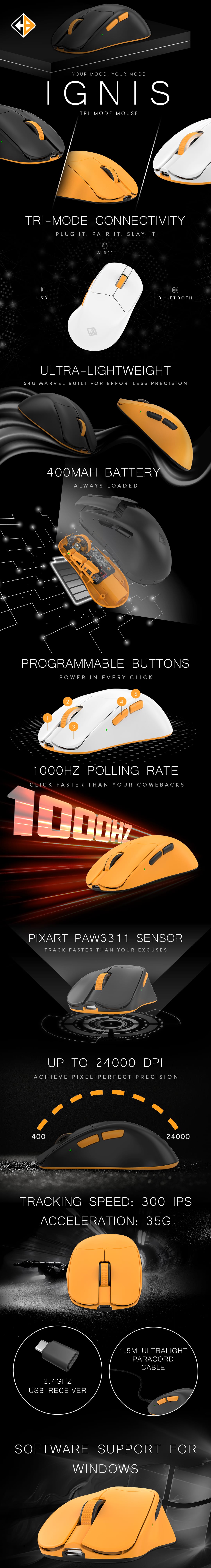 SaleCosmic Byte Ignis Tri Mode Gaming Mouse, Pixart 3311 Sensor, 1000Hz Polling, Software Support