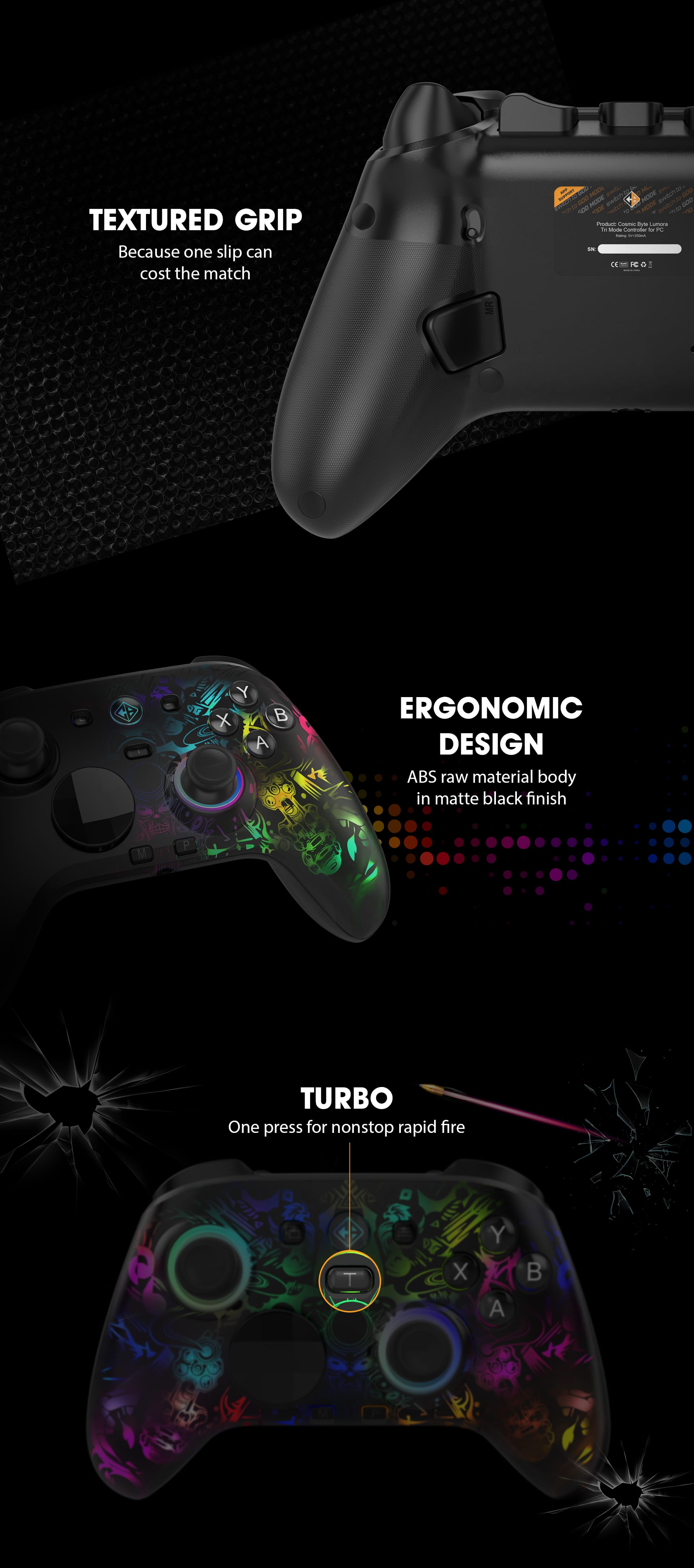 Press Turbo + the same button again to disable Turbo on that specific button. To clear Turbo from all buttons at once, hold the TURBO button + START together for 2 seconds. The controller will vibrate once to confirm all Turbo settings have been cleared.