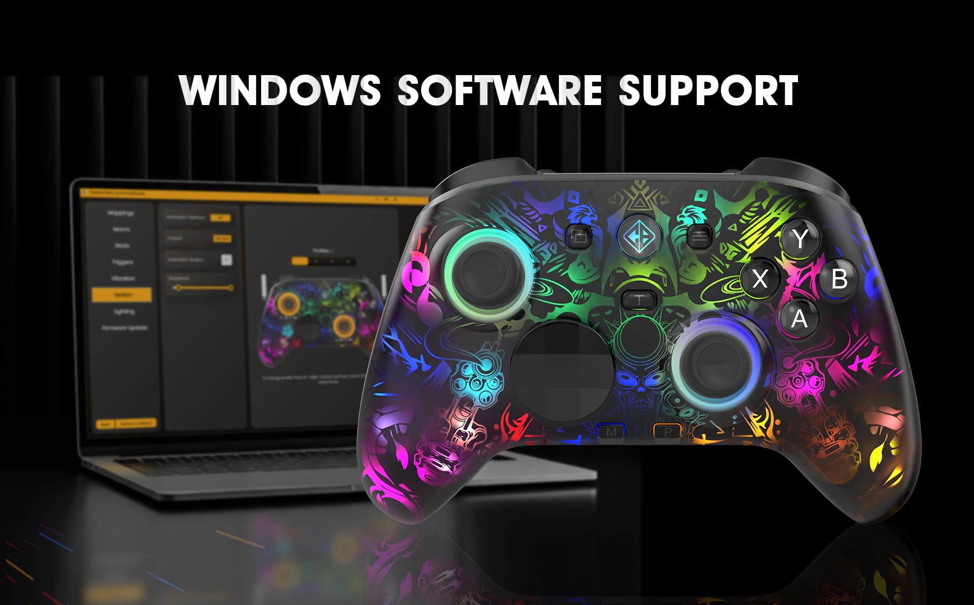 Firmware updates are done through the Cosmic Byte Windows software. Connect the controller via USB-C (wired mode), open the software, and check for available firmware updates. Keeping the firmware up to date ensures the best performance and compatibility.