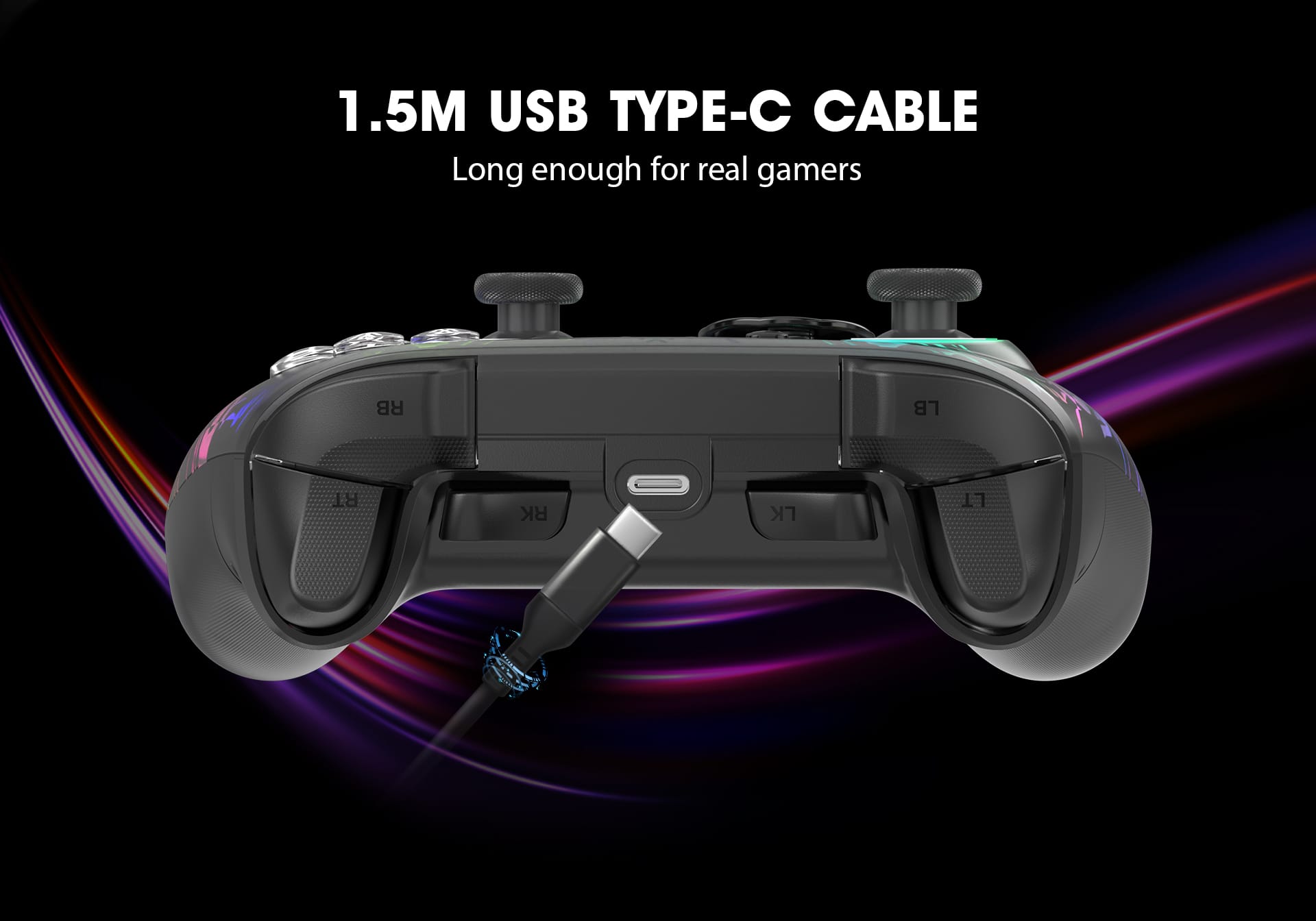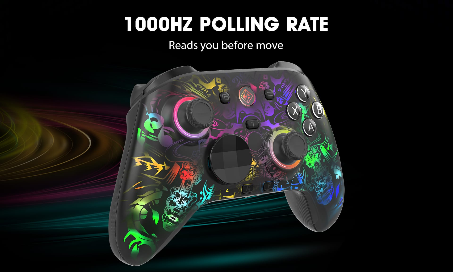 The 6-axis gyroscope is available when connected via Bluetooth in Gyro Mode. To activate it, hold Y + P for 3 seconds until the LED starts blinking, then pair it to your PC via Windows Settings → Bluetooth & Devices → Add Device → select "Pro Controller." Once the LED stabilises, the controller is ready in Gyro Mode.
