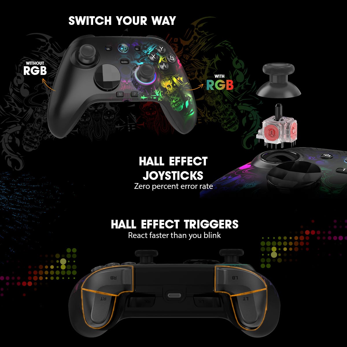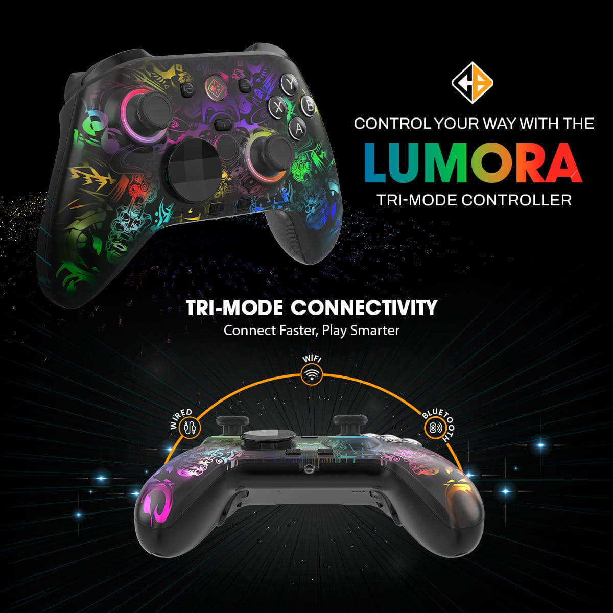 Cosmic Byte Lumora Tri Mode Controller for PC, Dedicated Software Support, Cloak RGB, Mechanical Switches