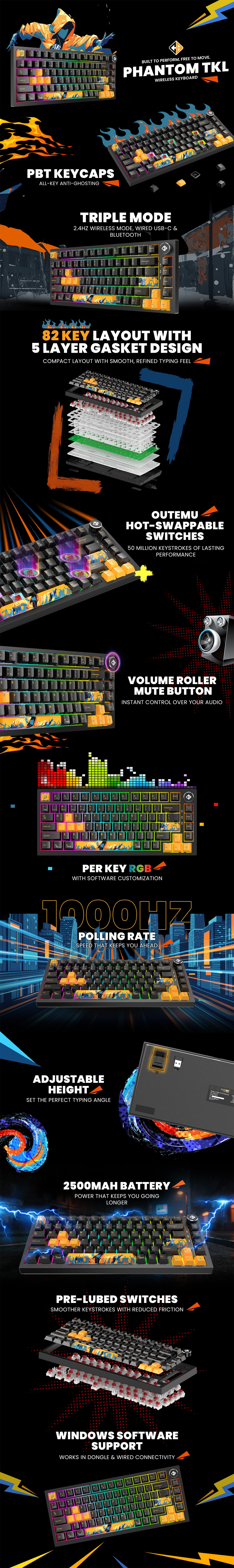 SaleCosmic Byte Phantom TKL Tri-Mode Gasket Hot Swappable Mechanical Switch Keyboard