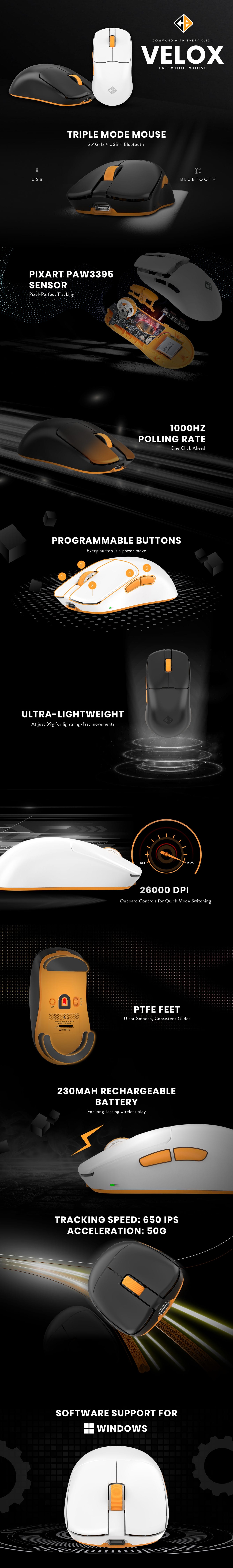 SaleCosmic Byte Velox Tri Mode Mouse, Pixart 3395 Sensor, 39 Grams